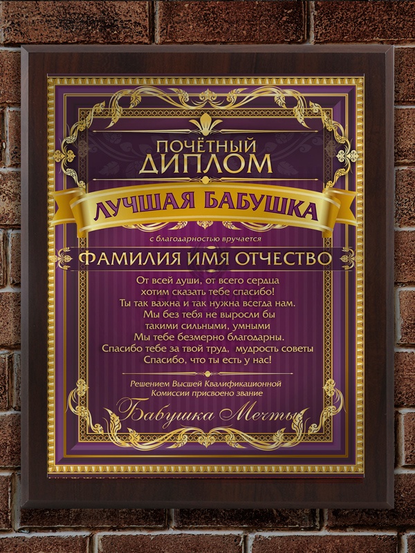 Плакетка "Лучшая бабушка", размеры 255*200 мм