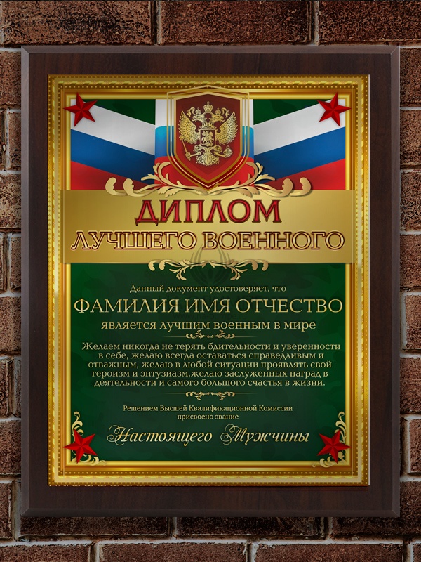 Плакетка "Лучший военный", размеры 255*200 мм