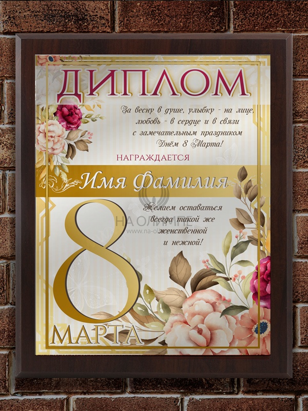 Плакетка "С 8 Марта", размеры 255*200 мм