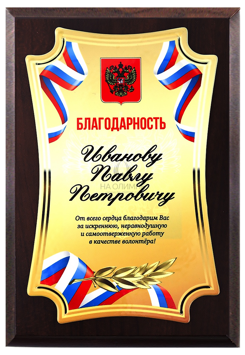 Деревянная плакетка в комплекте со стальной пластиной толщиной 1,2мм. Полноцветная сублимационная печать любого количества символов и изображений включена в стоимость.
