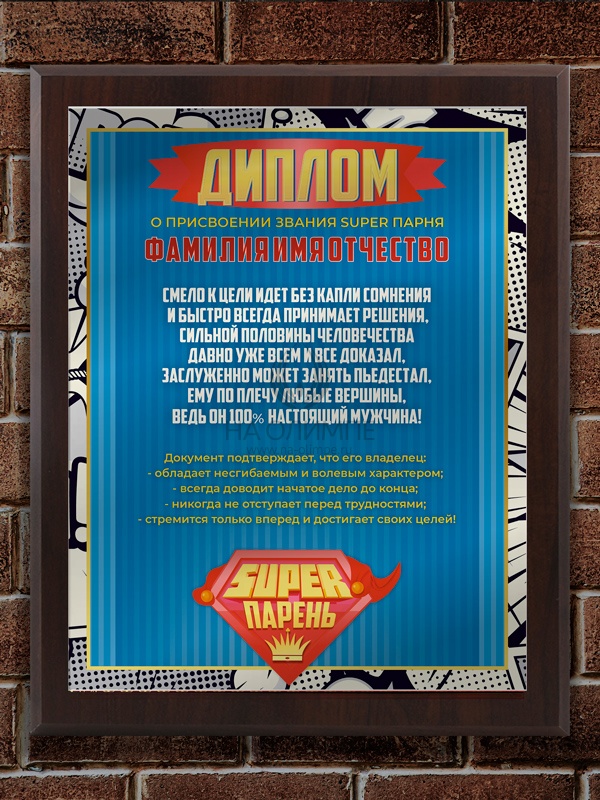 Деревянная плакетка в комплекте с металлической пластиной и готовым текстом.