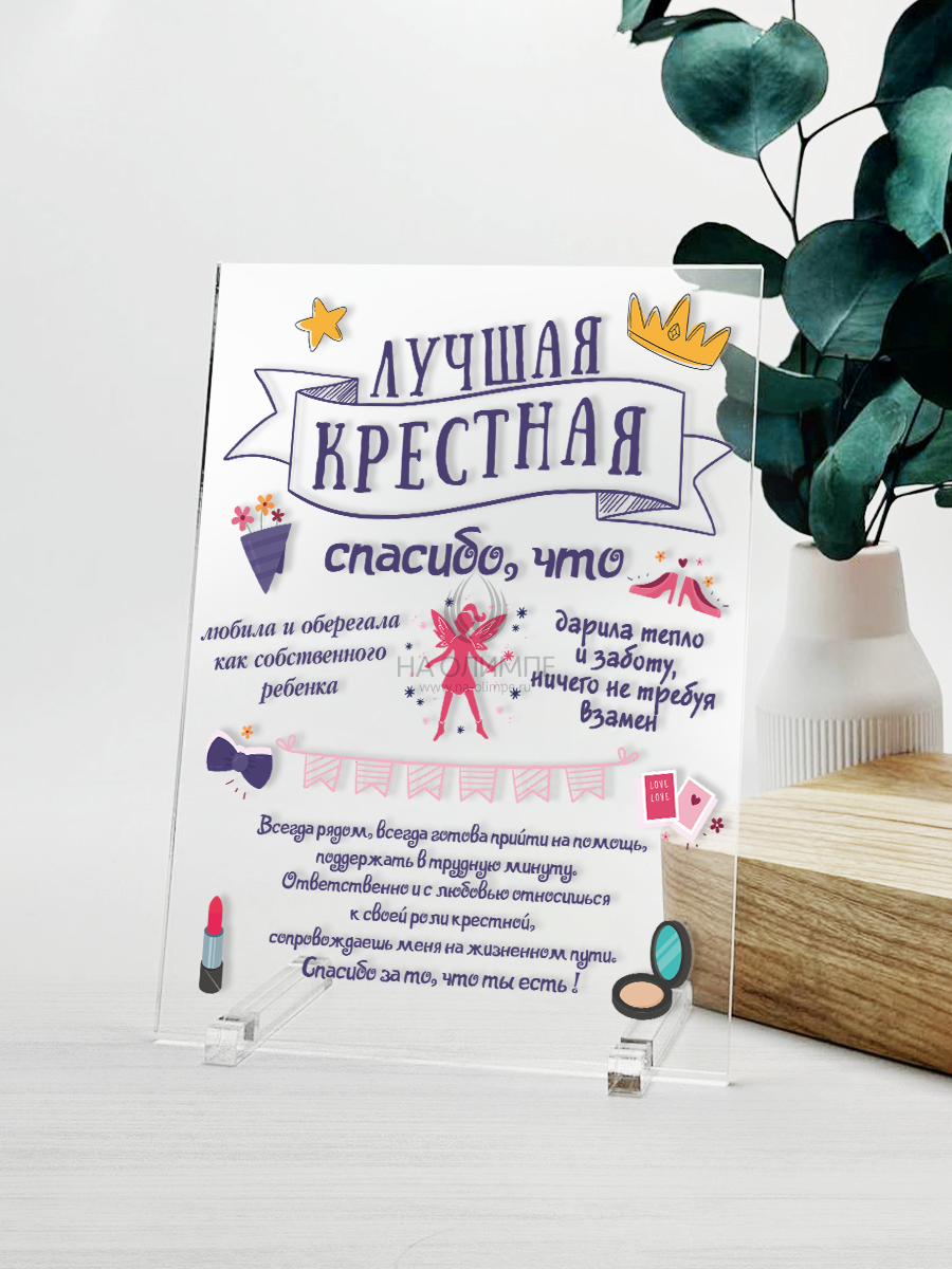 Постер открытка из прозрачного акрила с цветной печатью. В комплект входит прямоугольная пластина из акрила толщиной 3мм с готовым дизайном и две подставки.