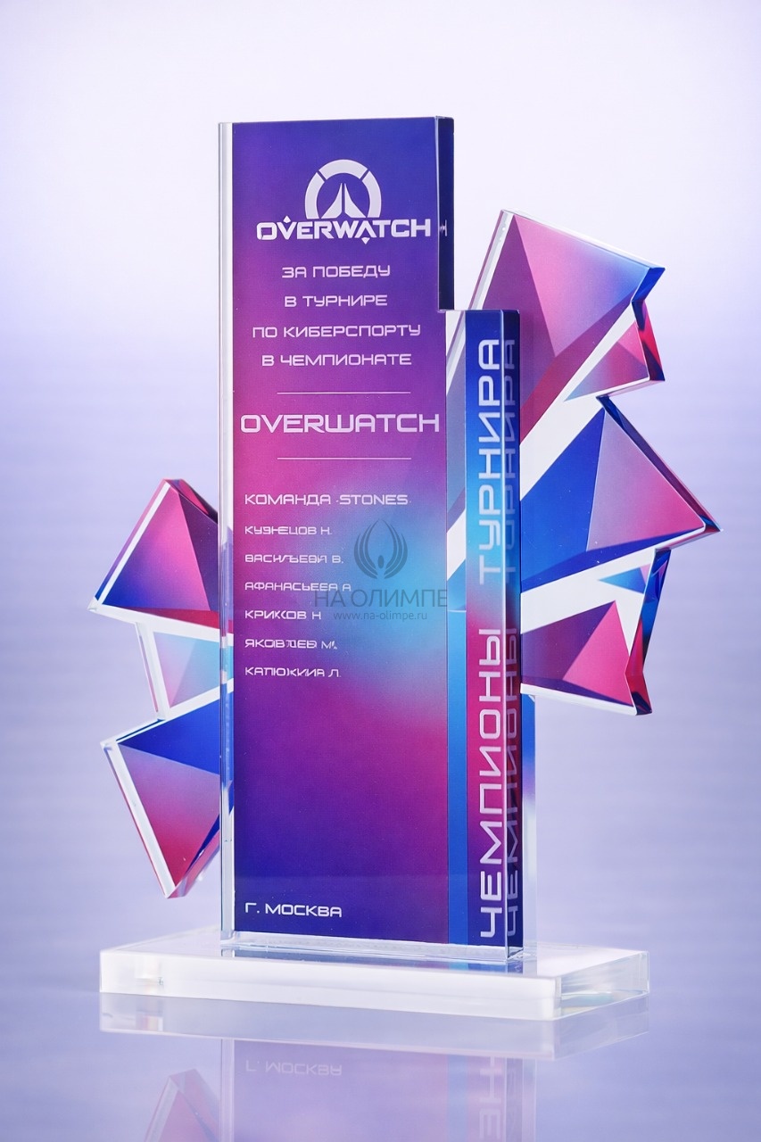 Приз из прозрачного акрила с цветной печатью.