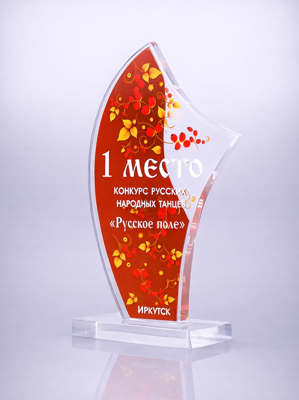 Приз из прозрачного акрила с цветной печатью.