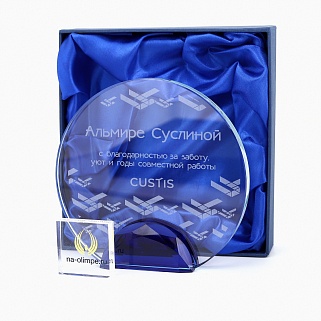 Закажите к награде дополнительно стеклянную медаль. Получится красивый солидный комплект!