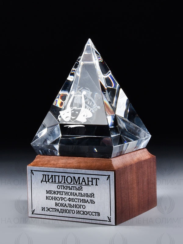Стеклянная награда с гравировкой и табличкой на деревянном постаменте. Поставляется в комплекте с подарочным футляром. Табличка входит в стоимость награды. Стоимость указана за нанесение на одной стороне, печать выполняется на передней стенке награды.