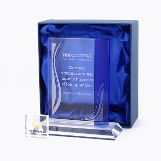 Стеклянная награда C8-170 с гравировкой, высота 16.8 см