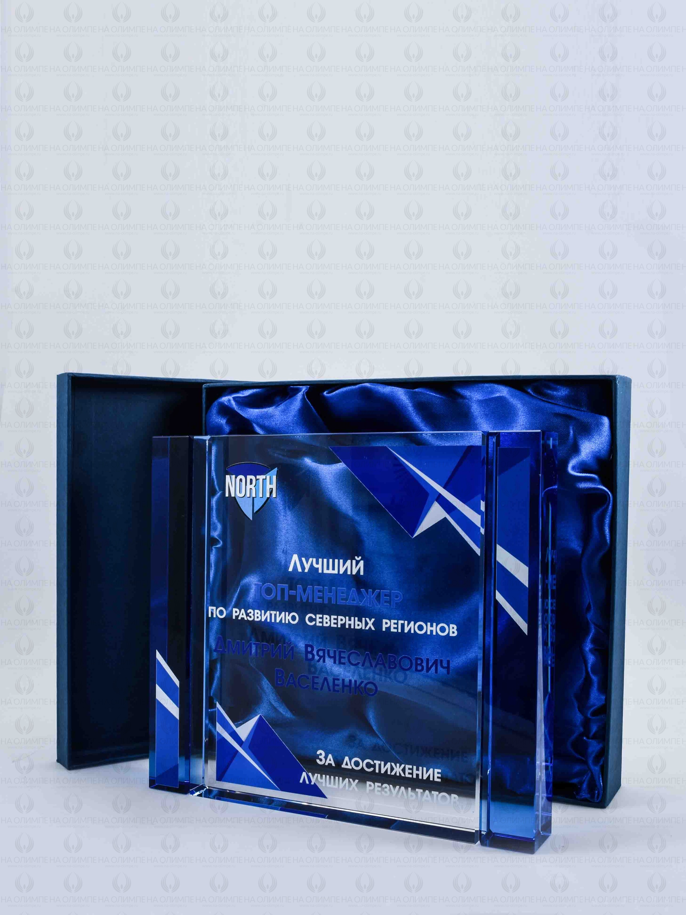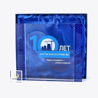 Стеклянная награда с полноцветным нанесением. Поставляется в комплекте с подарочным футляром. Толщина стекла 32 мм. Вес награды без футляра 3550гр. Стоимость указана за нанесение на одной стороне, печать выполняется на задней стенке награды.