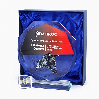 Закажите к награде дополнительно стеклянную медаль. Получится красивый солидный комплект!