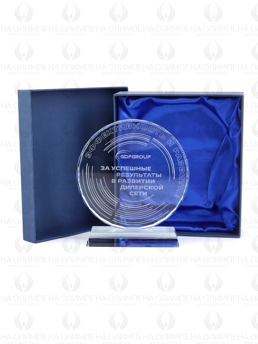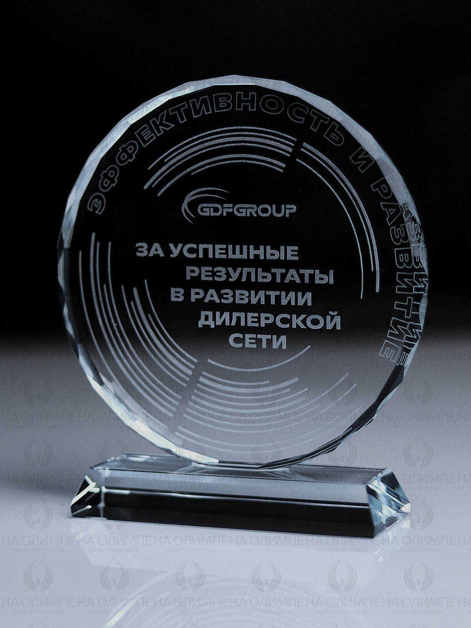 Стеклянная награда HRG04 с гравировкой, высота 16.9 см