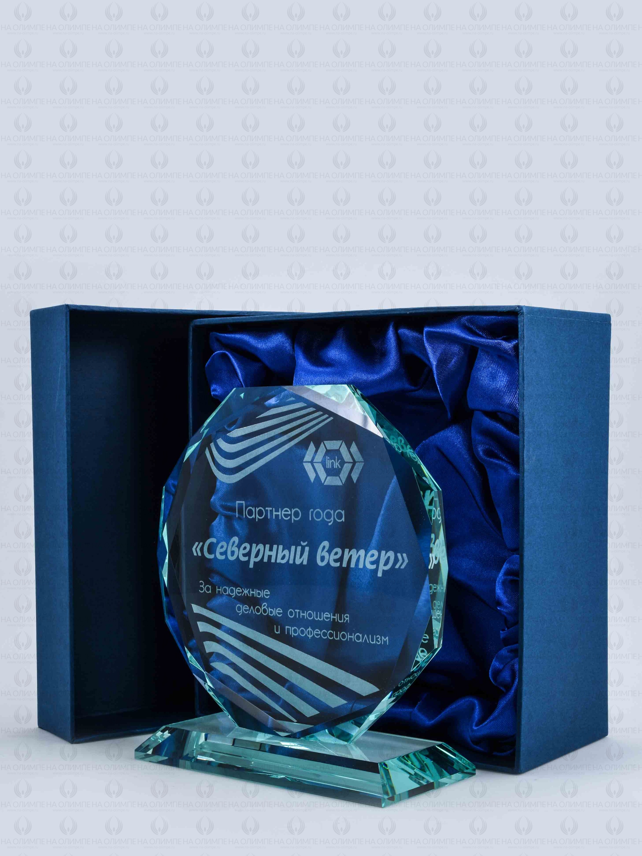 Стеклянная награда с гравировкой. Толщина стекла 14 мм. Поставляется в комплекте с подарочным футляром. Вес награды без футляра 980гр. Стоимость указана за нанесение на одной стороне, гравировка выполняется на передней стенке награды.