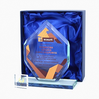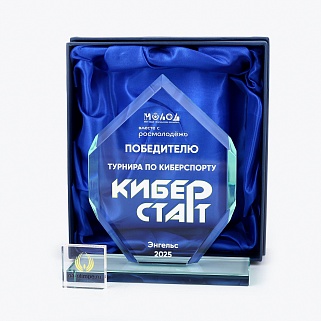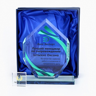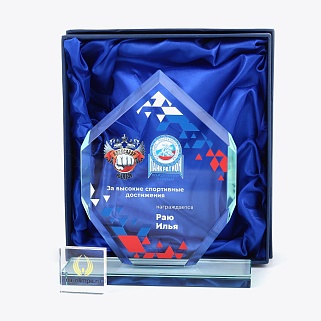 Закажите к награде дополнительно стеклянную медаль. Получится красивый солидный комплект!