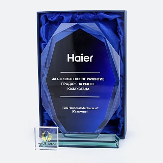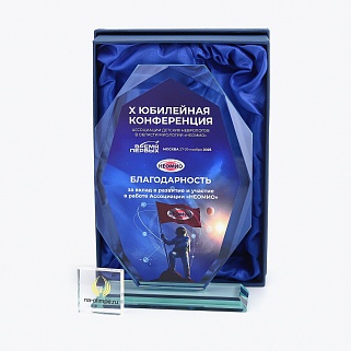 Закажите к награде дополнительно стеклянную медаль. Получится красивый солидный комплект!