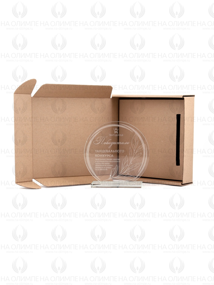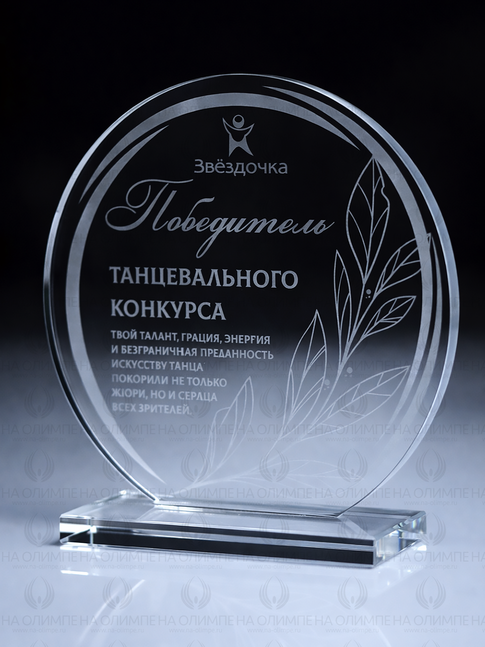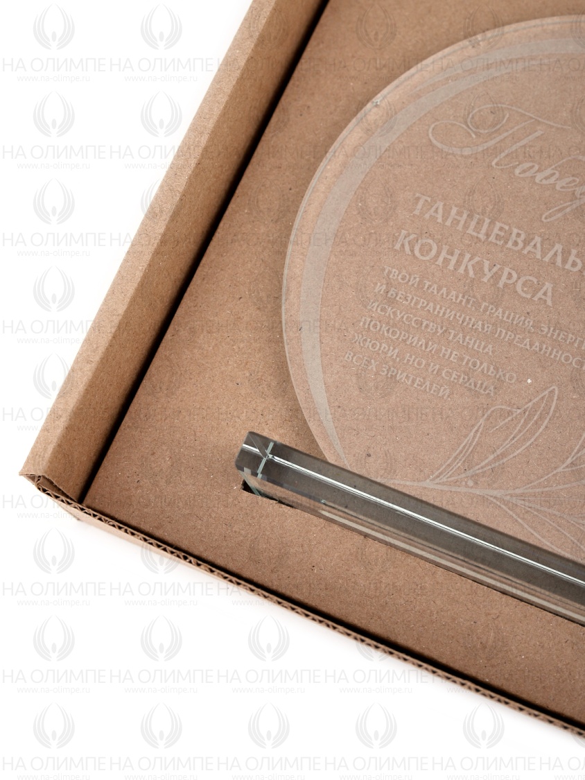 Стеклянная награда T03S с гравировкой, высота 15.5 см