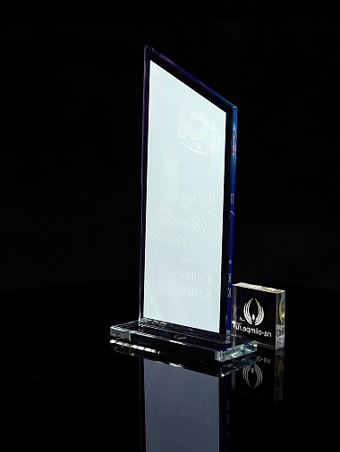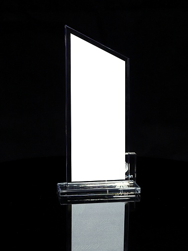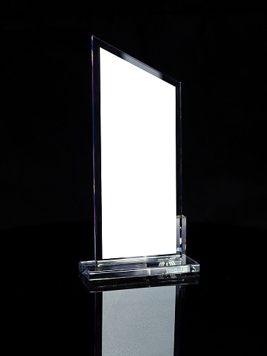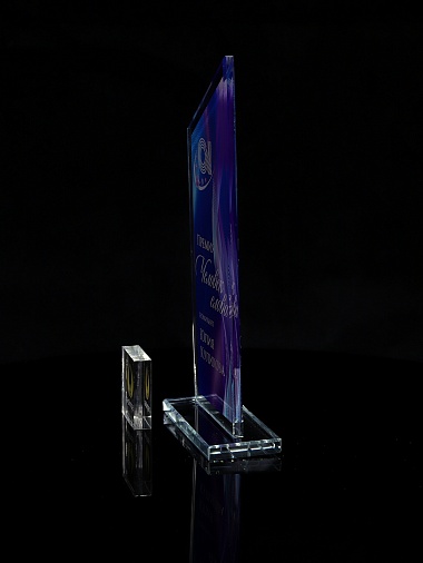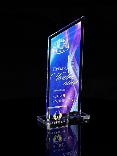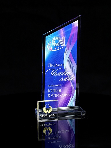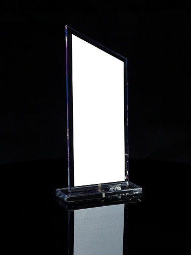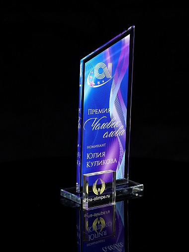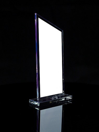 Стеклянная награда с полноцветным нанесением. Толщина стекла 6 мм. Стоимость указана за нанесение на одной стороне, печать выполняется на задней стенке награды. Поставляется в крафтовой коробке.