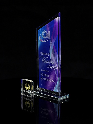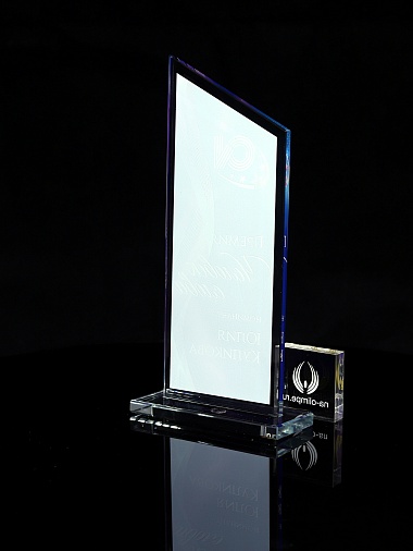 Закажите к награде дополнительно стеклянную медаль. Получится красивый солидный комплект!