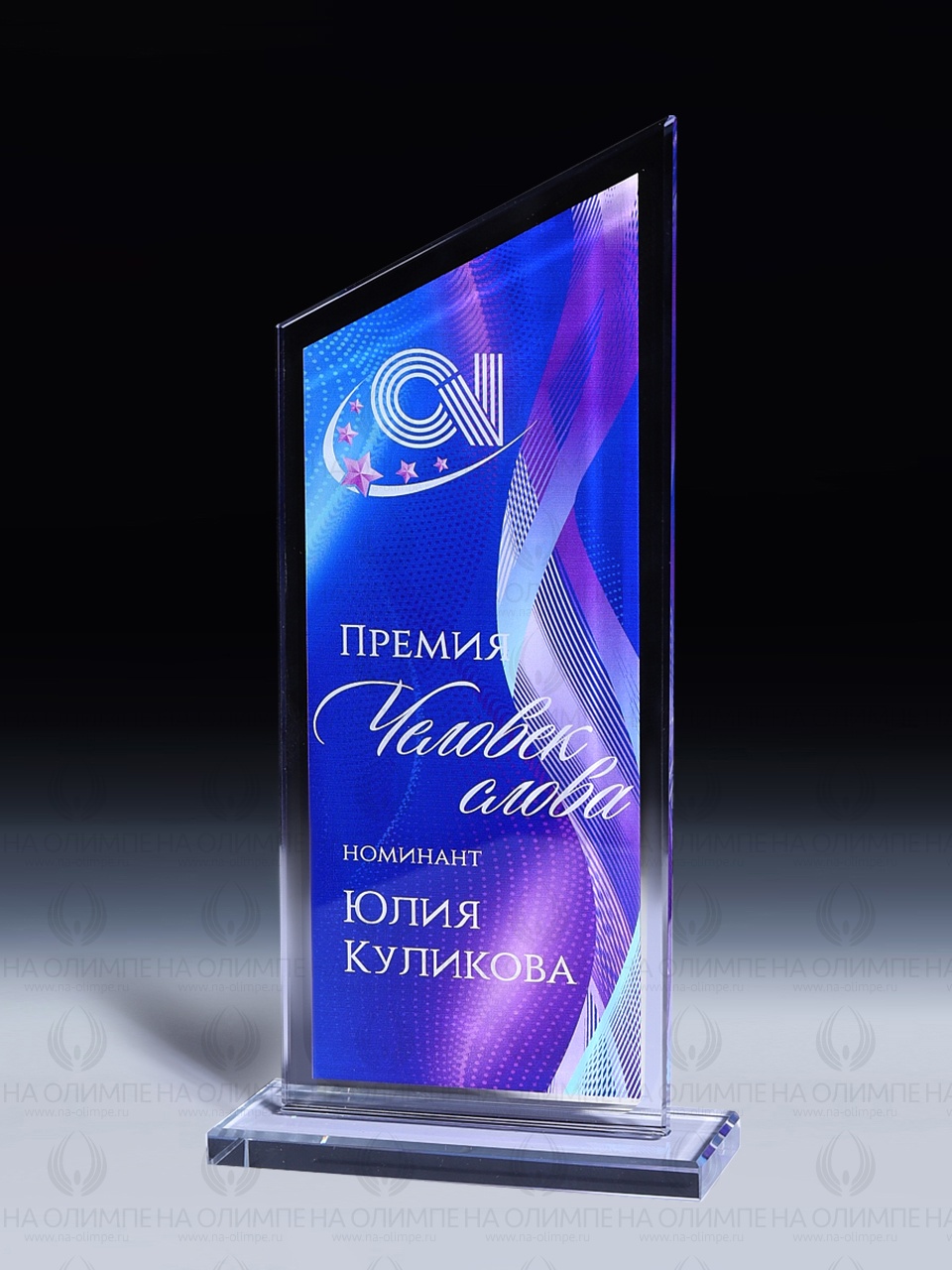 Стеклянная награда T07L с цветным нанесением, высота 20.8 см