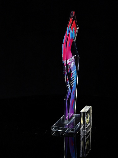 Стеклянная награда с полноцветным нанесением. Толщина стекла 6 мм. Стоимость указана за нанесение на одной стороне, печать выполняется на задней стенке награды. Поставляется в крафтовой коробке.