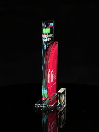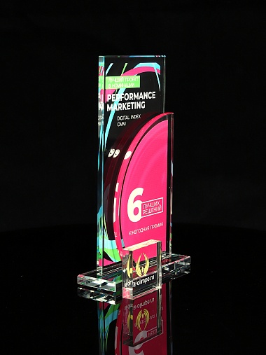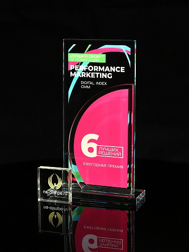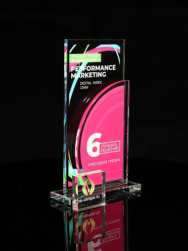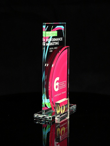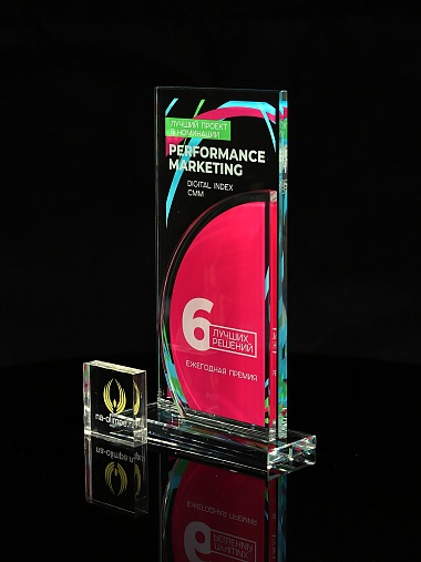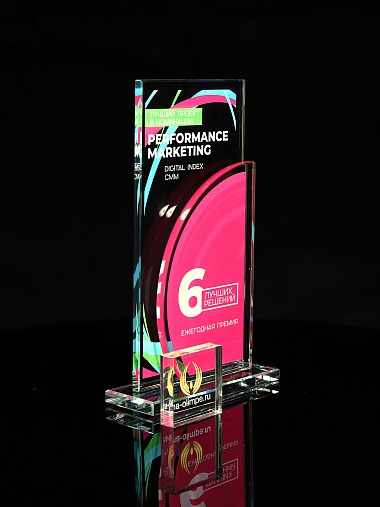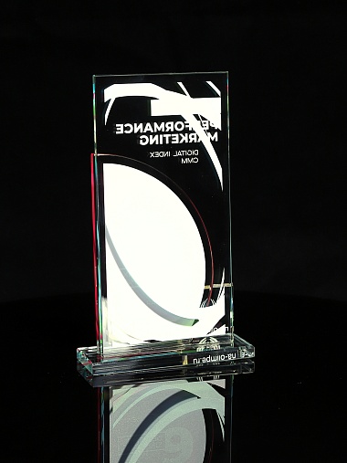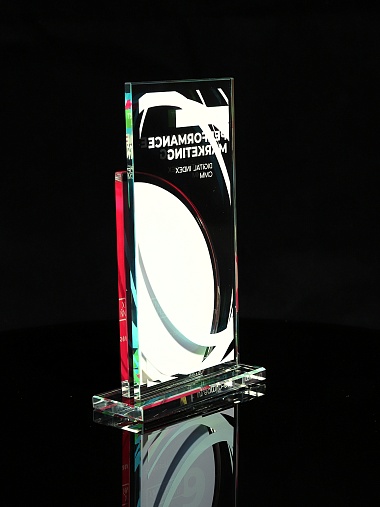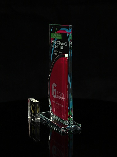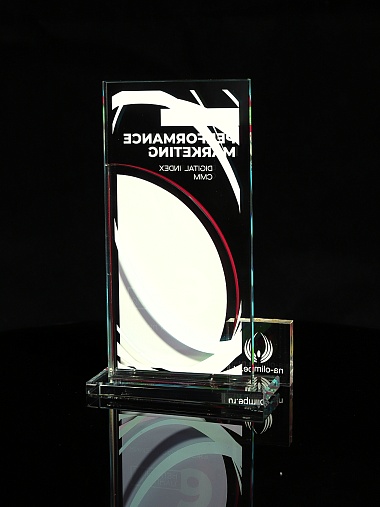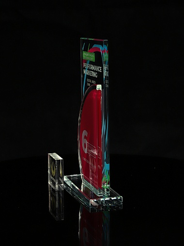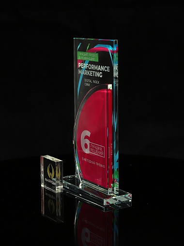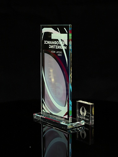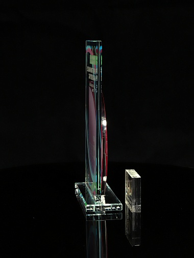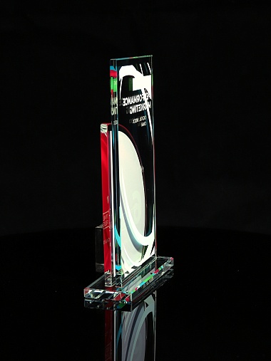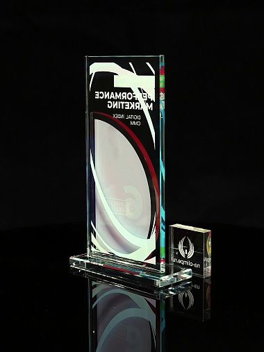 Стеклянная награда T10M с цветным нанесением, высота 18.8 см