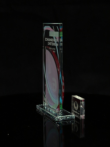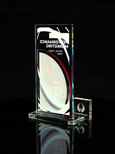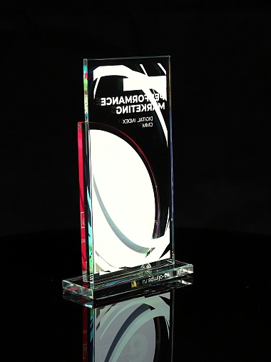 Стеклянная награда с полноцветным нанесением. Толщина стекла 6 мм. Стоимость указана за нанесение на одной стороне, печать выполняется на задней стенке награды. Поставляется в крафтовой коробке.