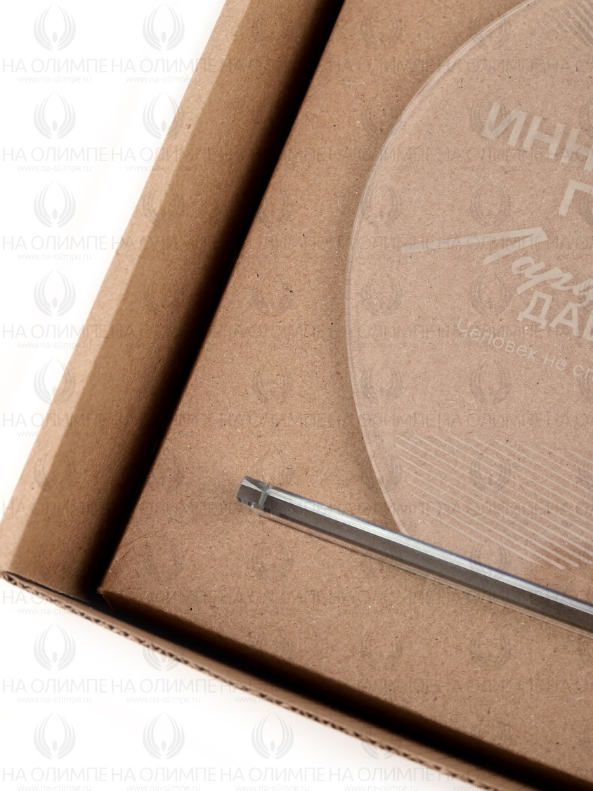 Закажите к награде дополнительно стеклянную медаль. Получится красивый солидный комплект!