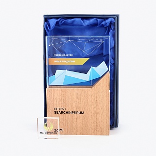 Награда из стекла и дерева с полноцветным нанесением по вашему запросу. Толщина стекла 20 мм. Вес награды без футляра 850гр.