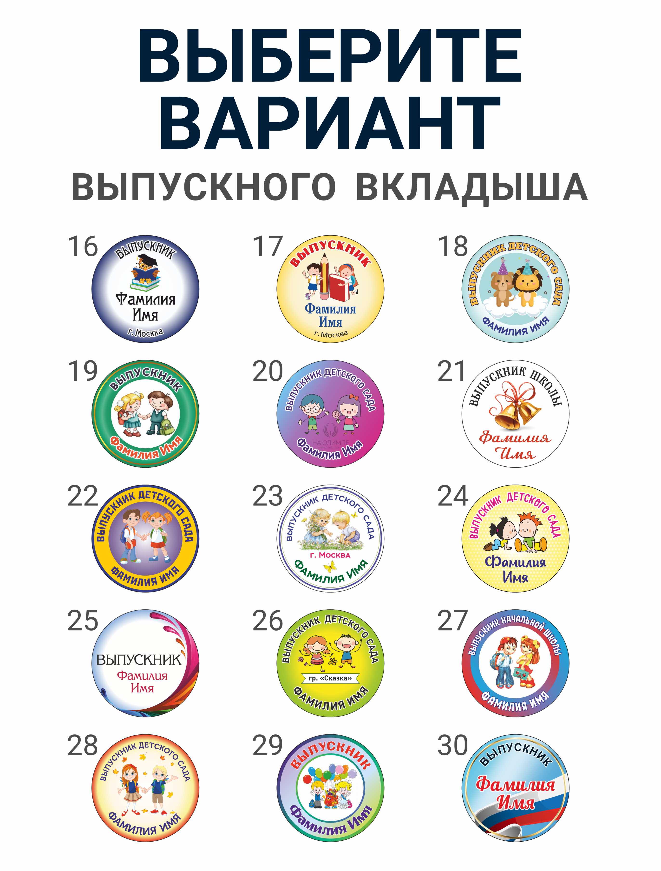 На выпускной вкладыш (золотой / серебряный / белый ) можно нанести любой текст и изображение. Нами разработаны готовые выпускные макеты , или мы можем нанести любое ваше изображение. По желанию заказчика могут быть высланы на электронную почту макеты в разных стилях. Тогда производство начнется только после утверждения макетов.