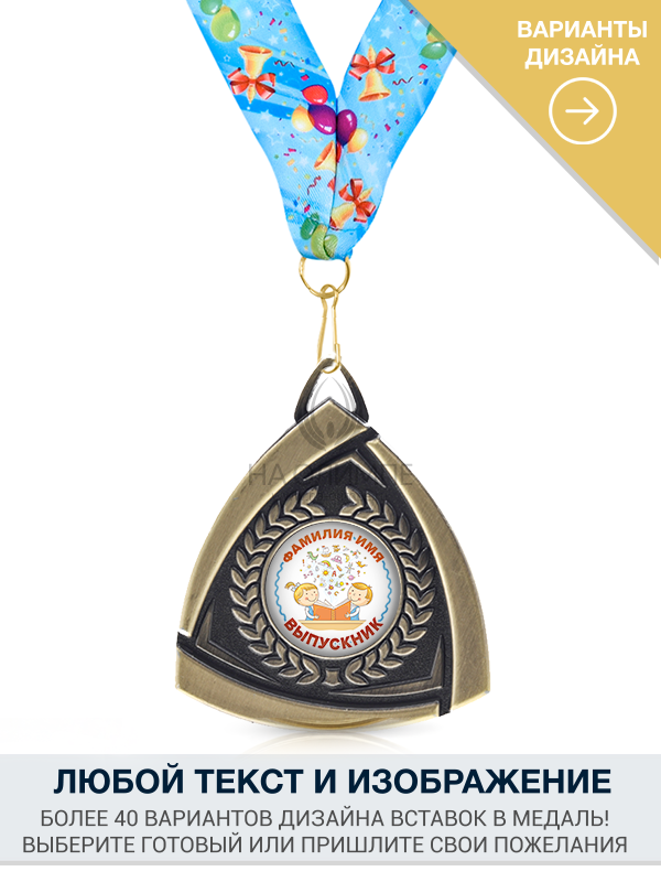Выпускная медаль с заливным вкладышем PL103 и Выпускной лентой, вид ленты текстильная