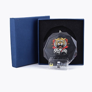 Медаль из стекла, толщиной 8мм с полноцветной печатью. Печать выполняется на uv-принтере уф-отверждаемыми чернилами. Изображение не выцветает и не желтеет со временем. Высокое качество печати позволяет наносить изображения с большой детализацией, любых цветов включая белый. Изображение наносится на обратную сторону медали зеркально, благодаря этому становится возможным оценить толщину материала награды и медаль раскрывается с лучшей стороны. Диаметр медали равен 80мм. Поставляется в комплекте с подарочным футляром (цвет футляра и подложка могут отличаться), лента в комплект не входит и заказывается отдельно. Вес награды без футляра 150гр.