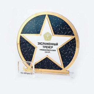 Приз из золотого и прозрачного акрила с цветным нанесением.