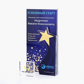 Приз из прозрачного акрила с цветной печатью.