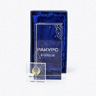Награда из оптического стекла с 3D гравировкой и цветным нанесением. Поставляется в комплекте с подарочным футляром. Вес награды без футляра 890гр. Стоимость указана за нанесение на лицевой и оборотной стороне награды. Возможность нанесения на дополнительной стороне и стоимость этих работ можно уточнить у менеджеров.