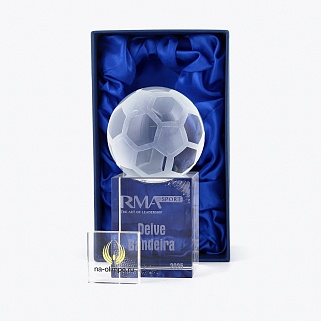 Награда из оптического стекла с гравировкой. Поставляется в комплекте с подарочным футляром. Вес награды без футляра 230гр. Диаметр мяча 40мм. Размер постамента  50х35х35мм.