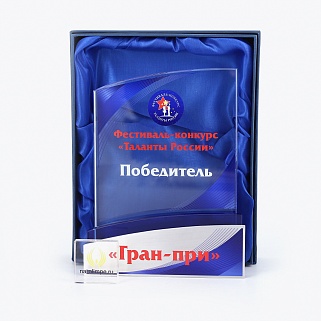 Стеклянная награда с полноцветным нанесением. Толщина стекла 19 мм. Поставляется в комплекте с подарочным футляром. Вес награды без футляра 1510гр. Стоимость указана за нанесение на одной стороне, печать выполняется на задней стенке награды.