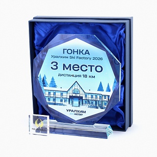 Закажите к награде дополнительно стеклянную медаль. Получится красивый солидный комплект!