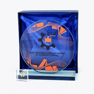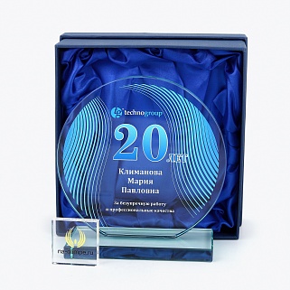 Закажите к награде дополнительно стеклянную медаль. Получится красивый солидный комплект!