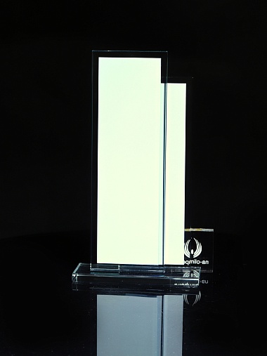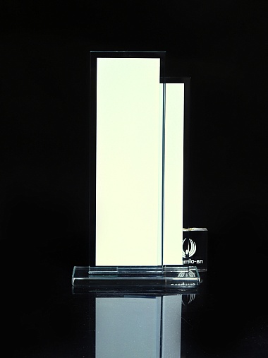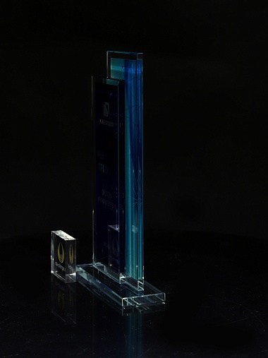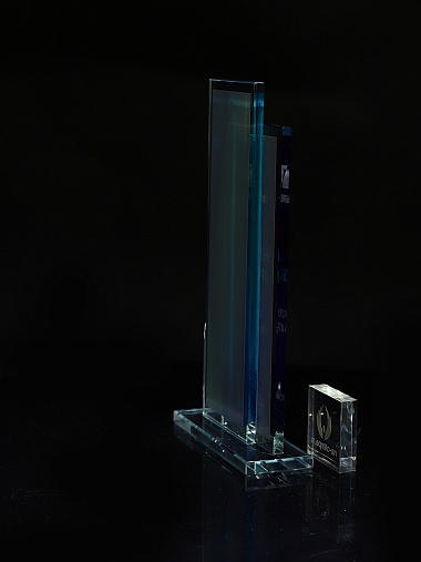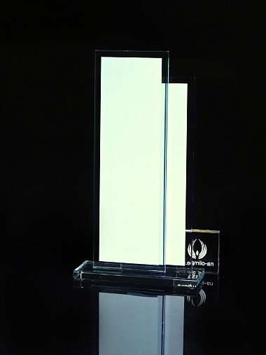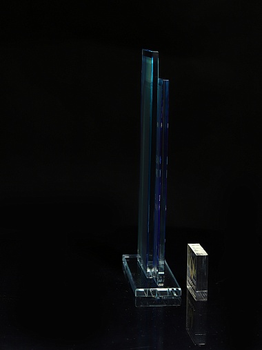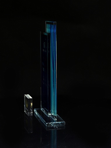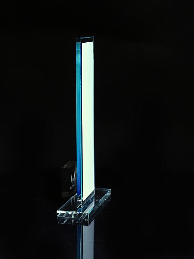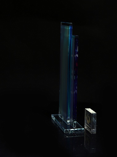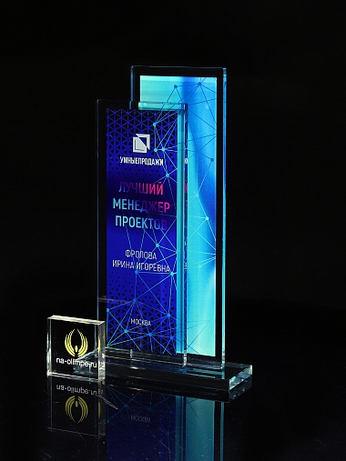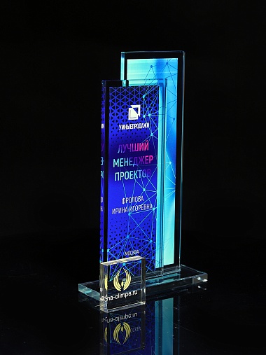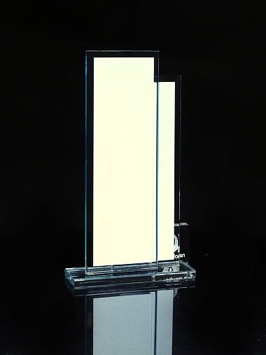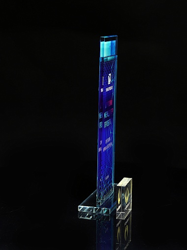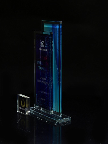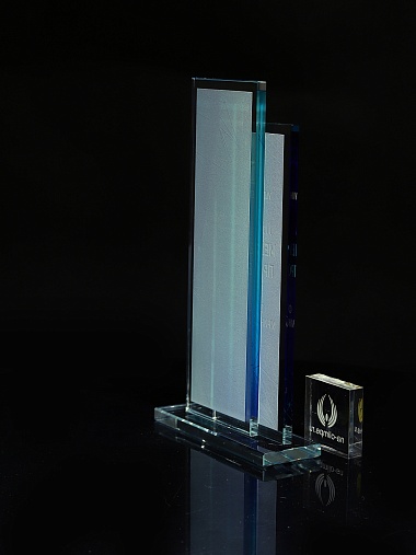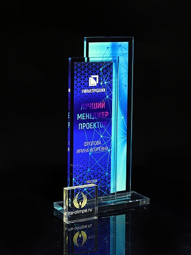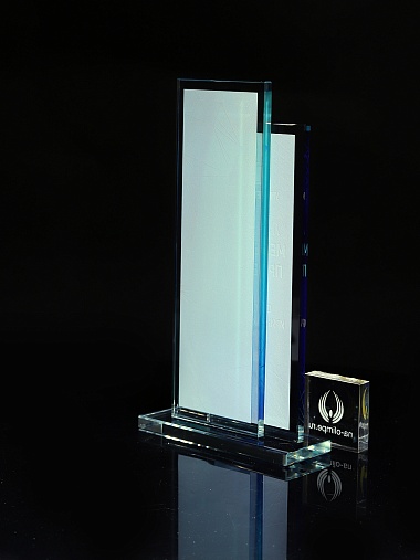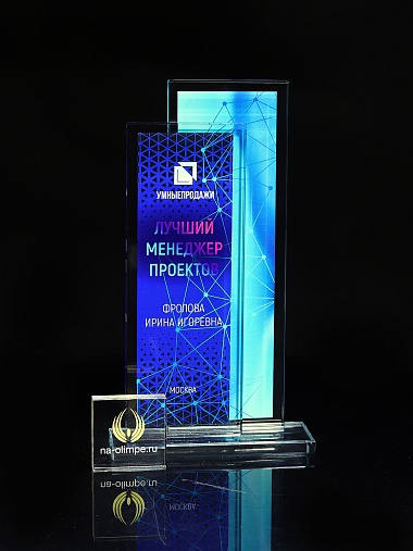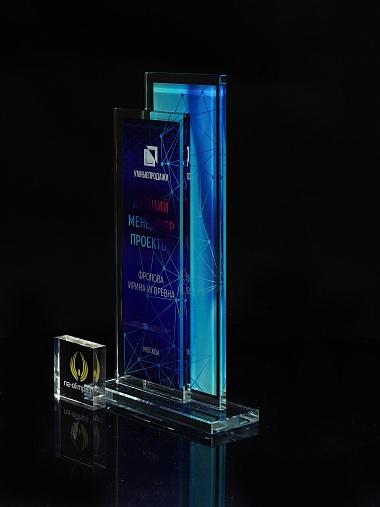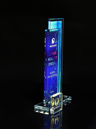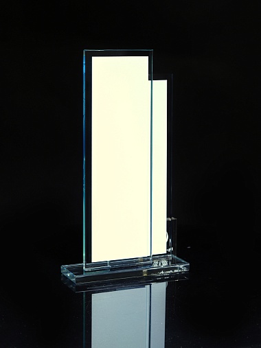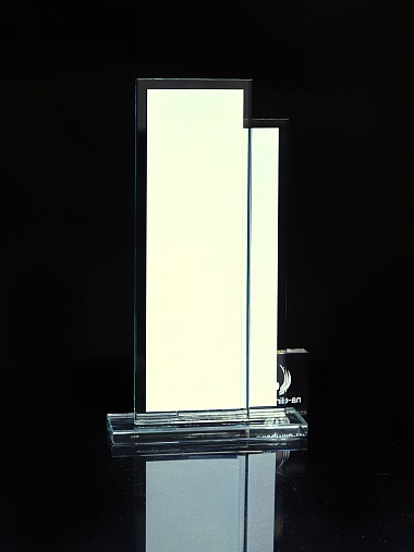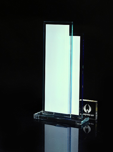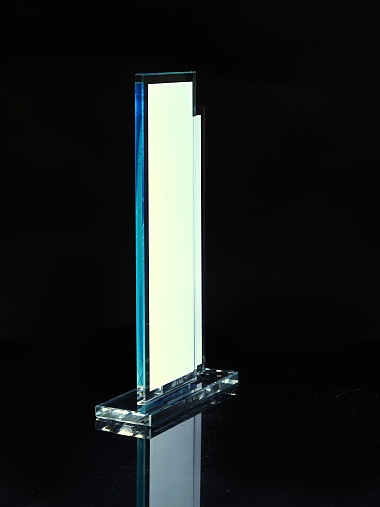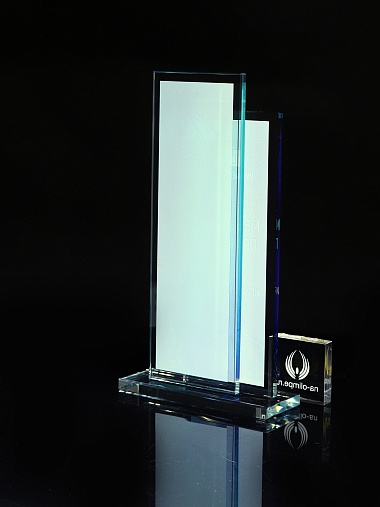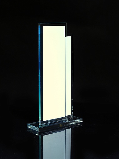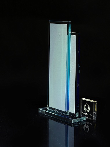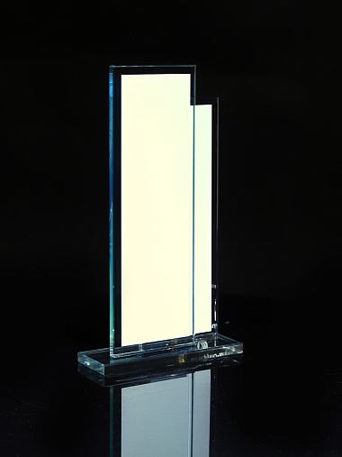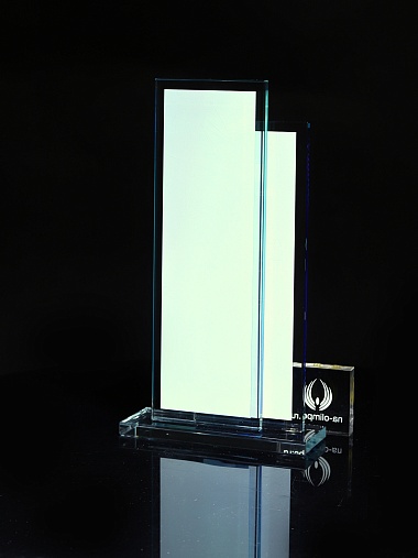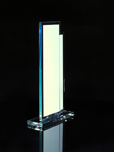 Стеклянная награда с полноцветным нанесением. Толщина стекол 6 мм. Стоимость указана за нанесение на одной стороне, печать выполняется на задней стенке награды. Поставляется в крафтовой коробке.