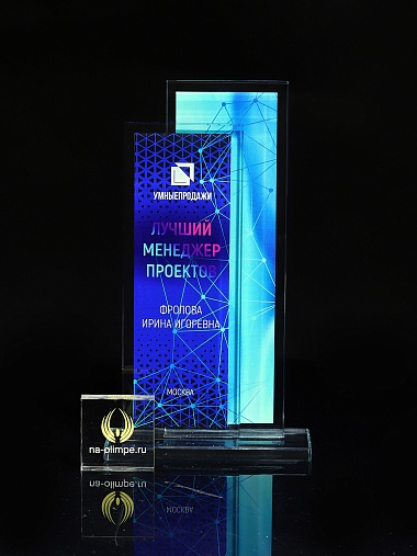 Стеклянная награда T06L с цветным нанесением, высота 20.8 см