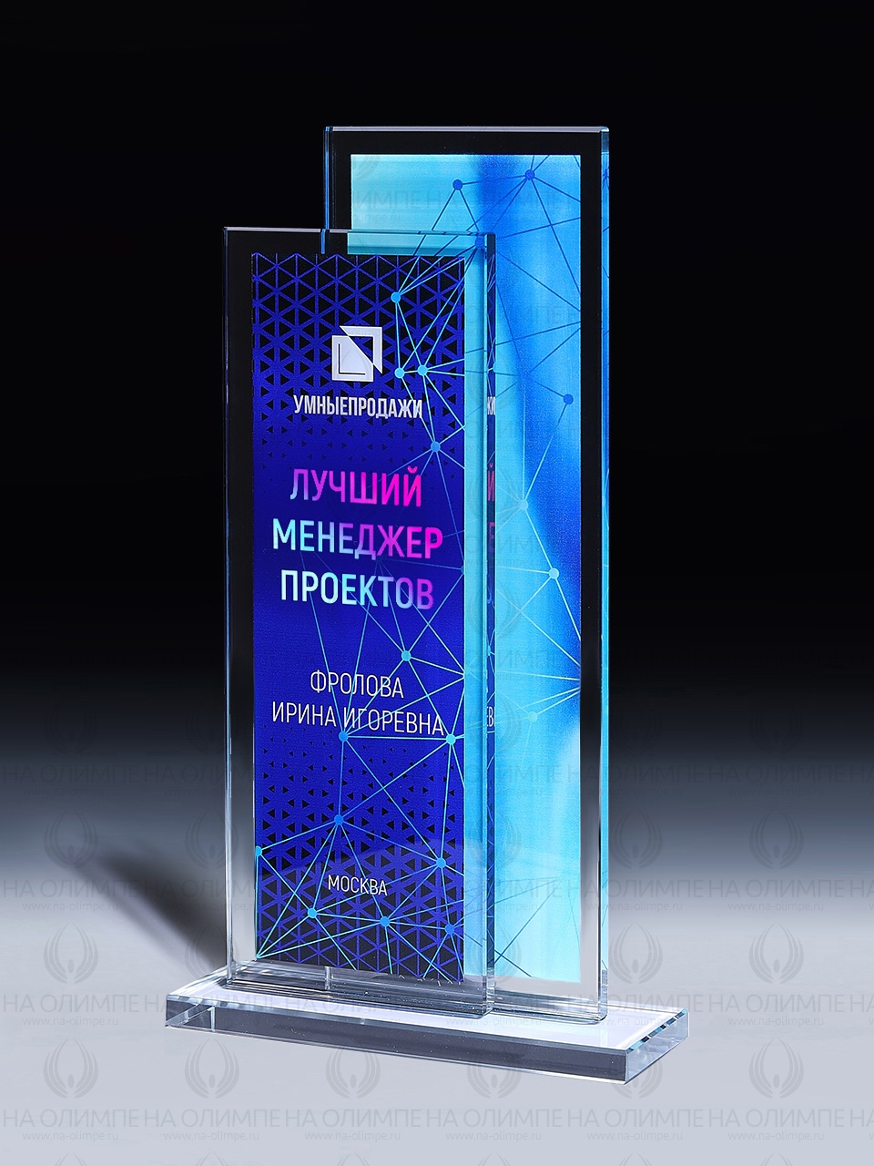 Закажите к награде дополнительно стеклянную медаль. Получится красивый солидный комплект!