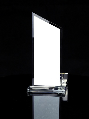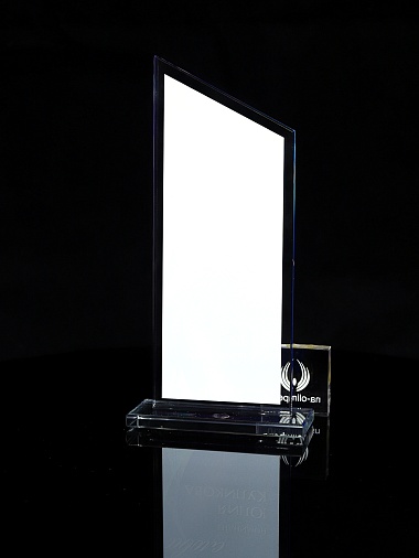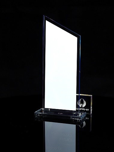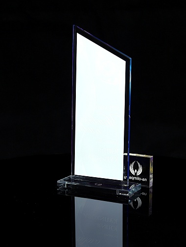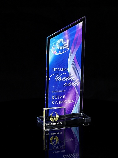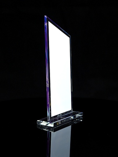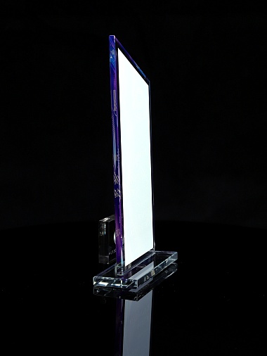 Стеклянная награда с полноцветным нанесением. Толщина стекла 6 мм. Стоимость указана за нанесение на одной стороне, печать выполняется на задней стенке награды. Поставляется в крафтовой коробке.
