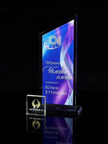 Стеклянная награда T07L с цветным нанесением, высота 20.8 см