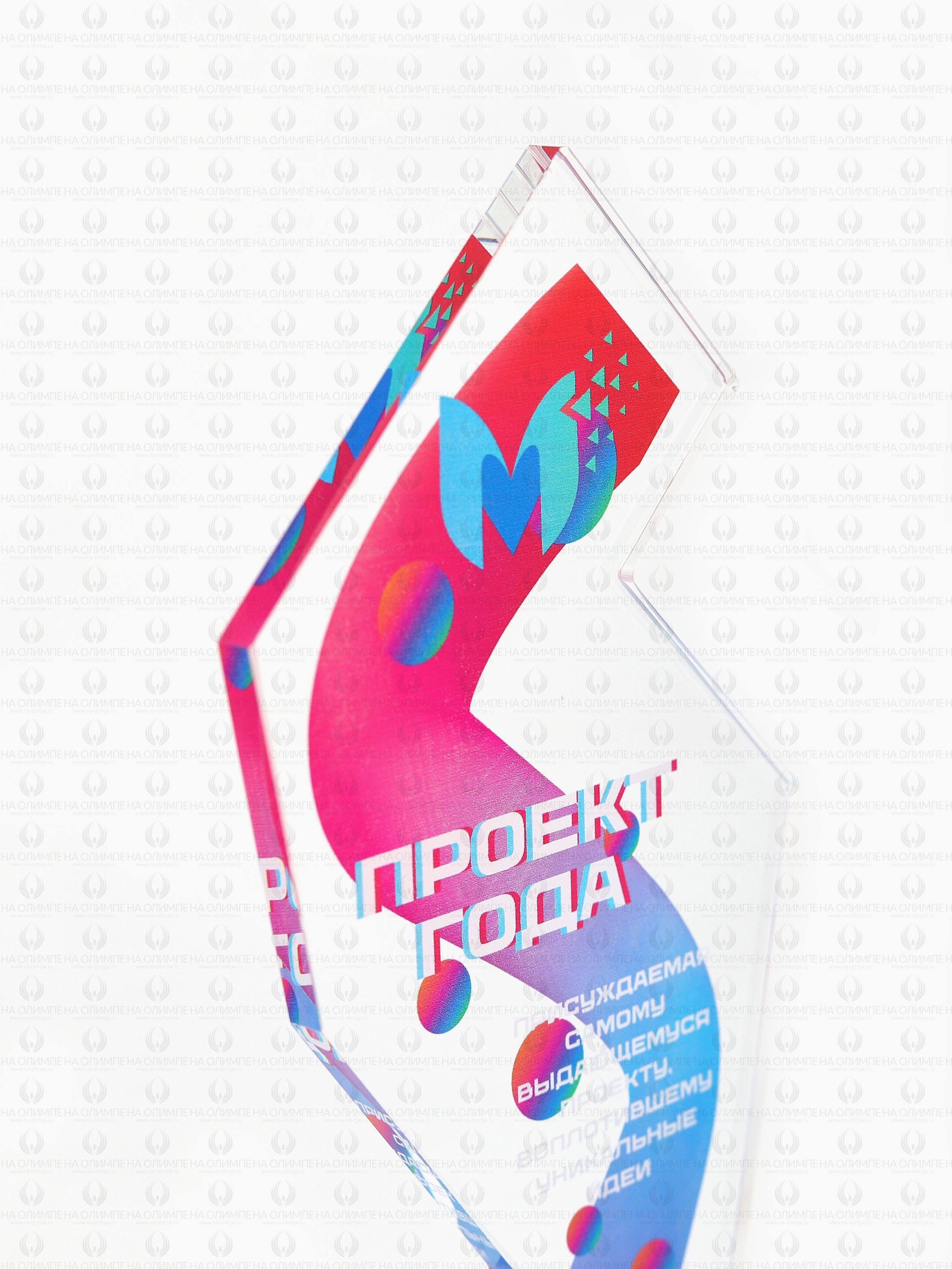 Стеклянная награда T08M с цветным нанесением, высота 20 см