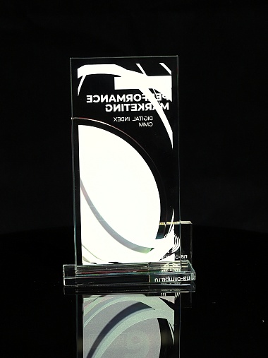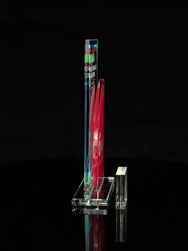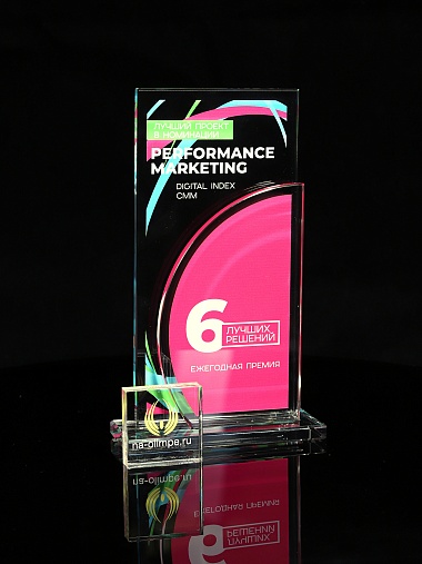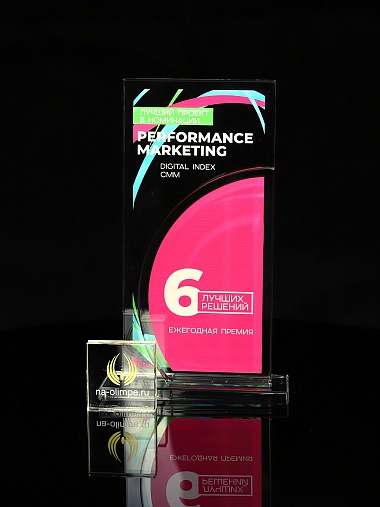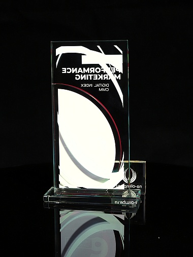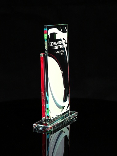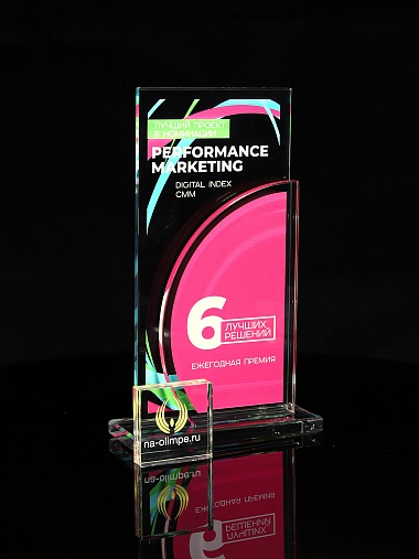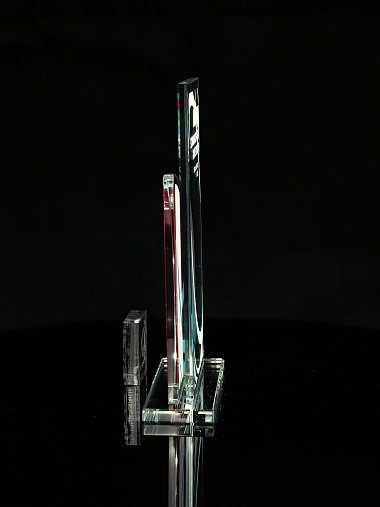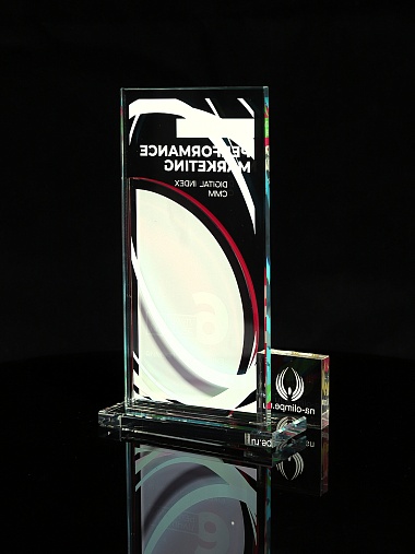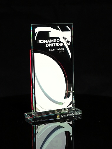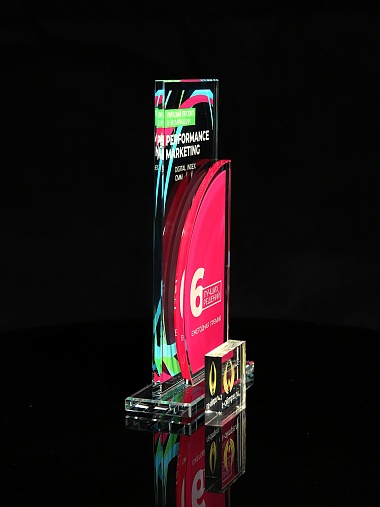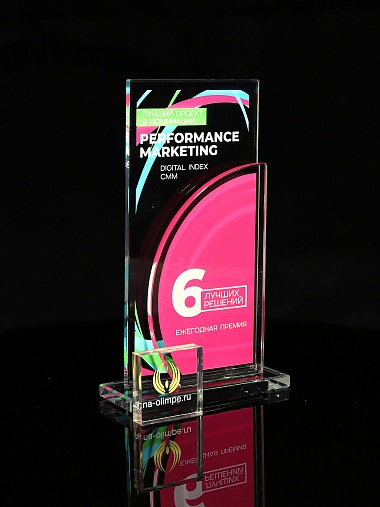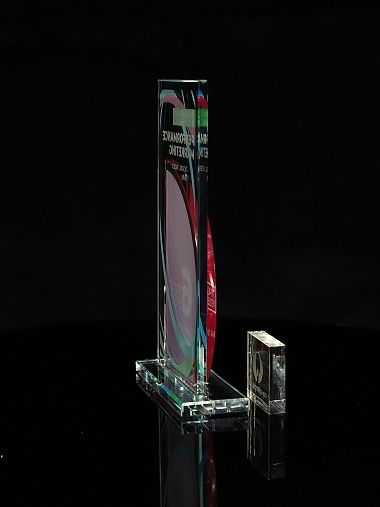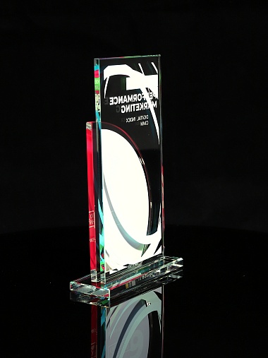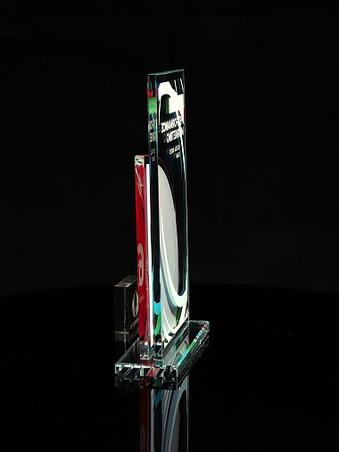 Стеклянная награда T10M с цветным нанесением, высота 18.8 см