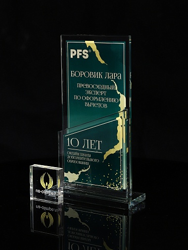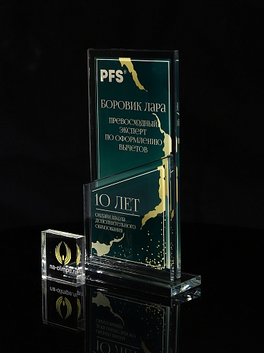 Закажите к награде дополнительно стеклянную медаль. Получится красивый солидный комплект!