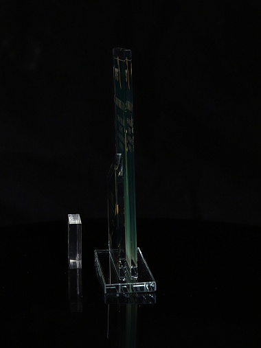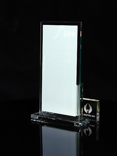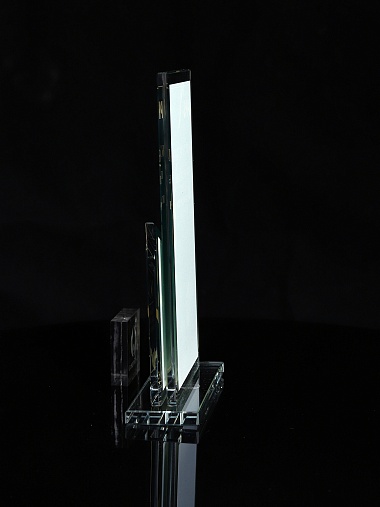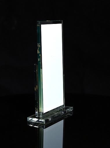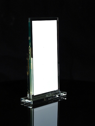 Стеклянная награда с полноцветным нанесением. Толщина стекла 6 мм. Стоимость указана за нанесение на одной стороне, печать выполняется на задней стенке награды. Поставляется в крафтовой коробке.